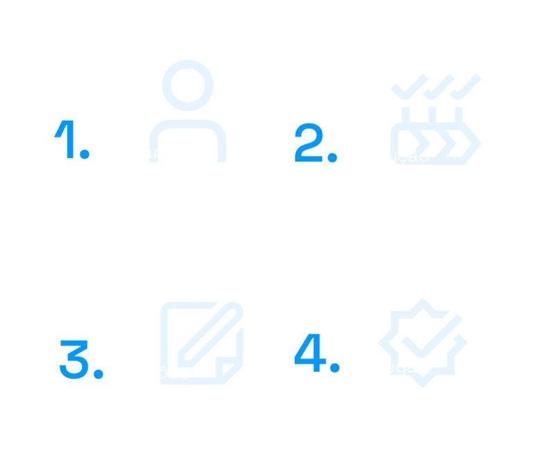Acreditamos que a transparência é o melhor caminho para o alinhamento de expectativas. Por isso, prezamos por um processo criativo claro e objetivo desde a primeira conversa.